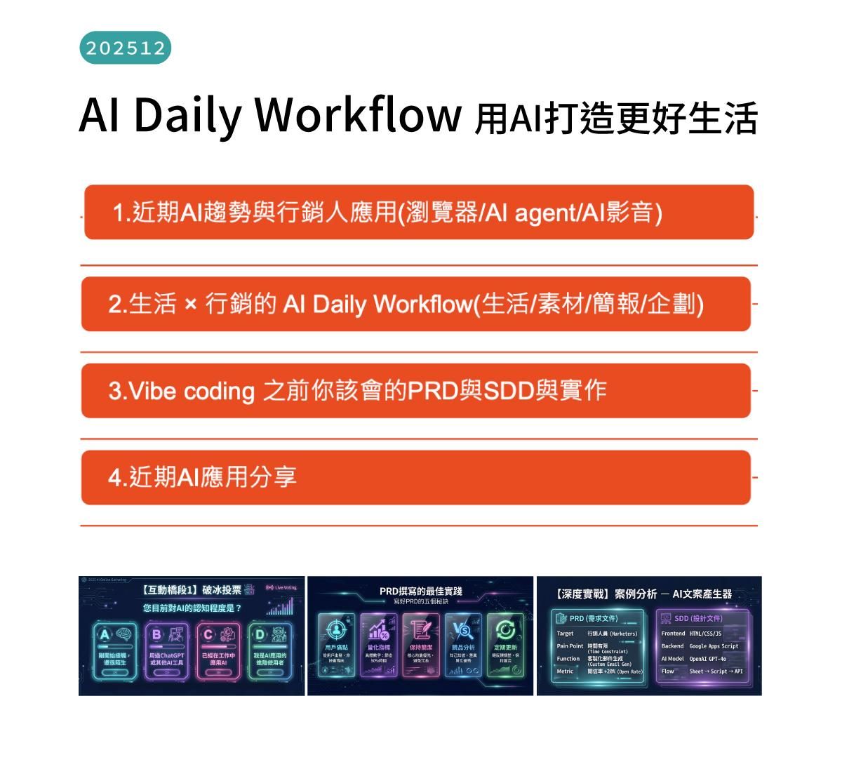 並邀請業內有應用AI的朋友分享,透過不斷輸出來持續學習,這就是線上AI小聚的目的。