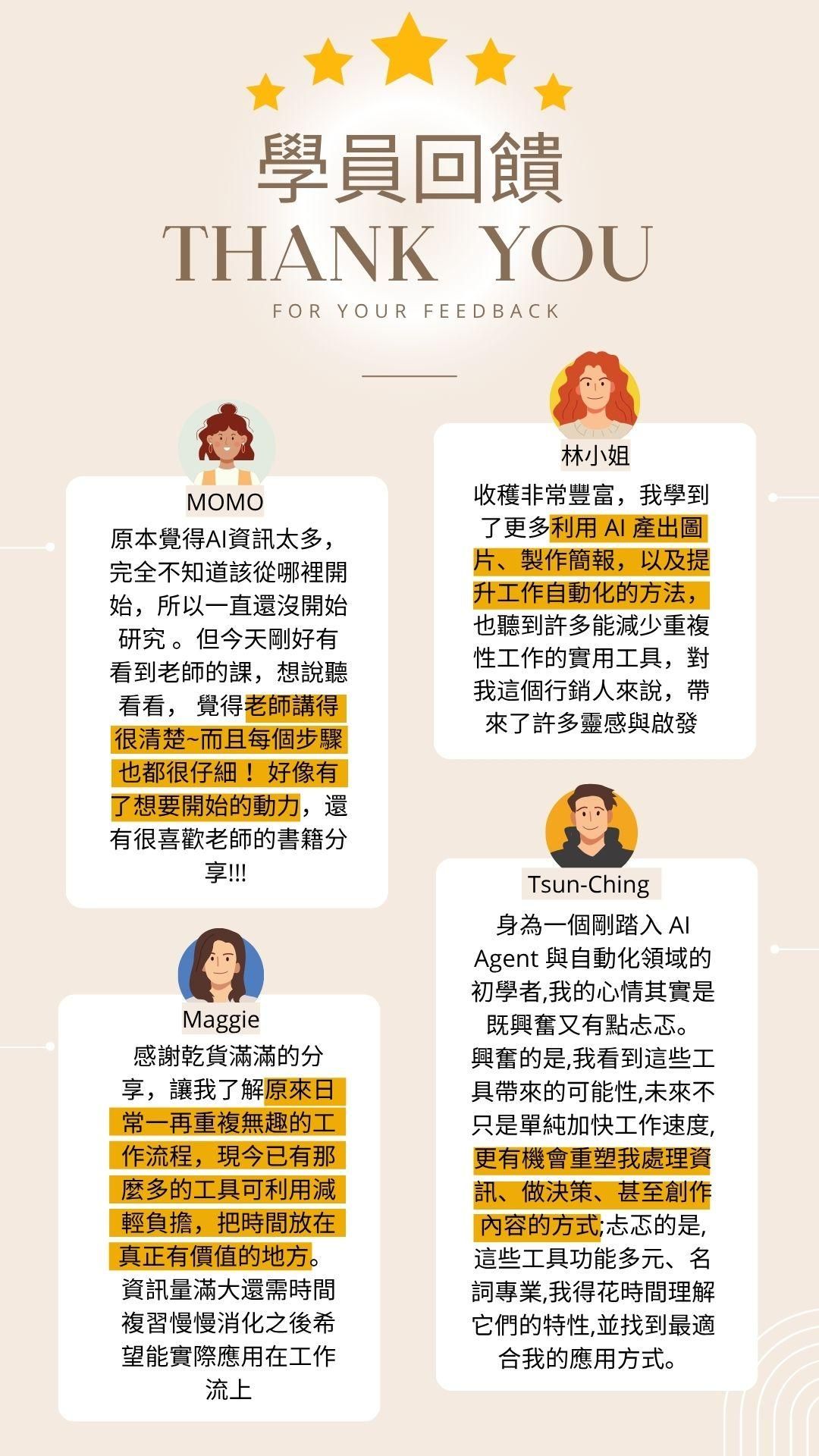 每次都會分享最新工具、應用技巧與進階工作流設計,讓你不只學會一招,持續跟上 AI 實戰的第一線。